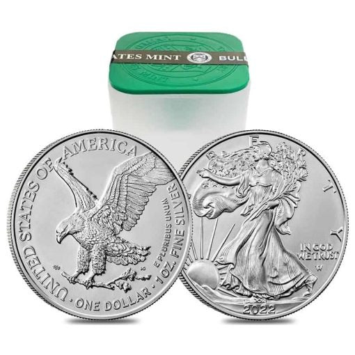 All of the 2022 1 oz American Silver Eagle Coins listed here come to you in Brilliant Uncirculated condition. Silver Eagles are available individually in plastic flips. Multiples of the coin come in tubes of 20 or Monster Boxes of 500 coins. US Mint Monster Boxes hold a total of 25 tubes of 20 coins each.